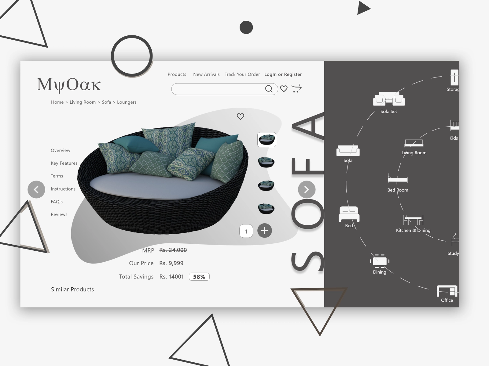This is one of the concepts of the first screen of the online ECommerce store which sells Furniture and is called MyOak.